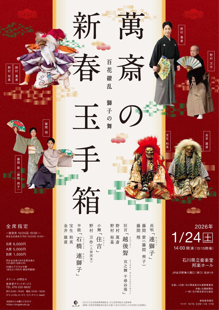 24日:萬斎の音楽玉手箱 石川県立音楽堂邦楽ホール(連獅子ほか)